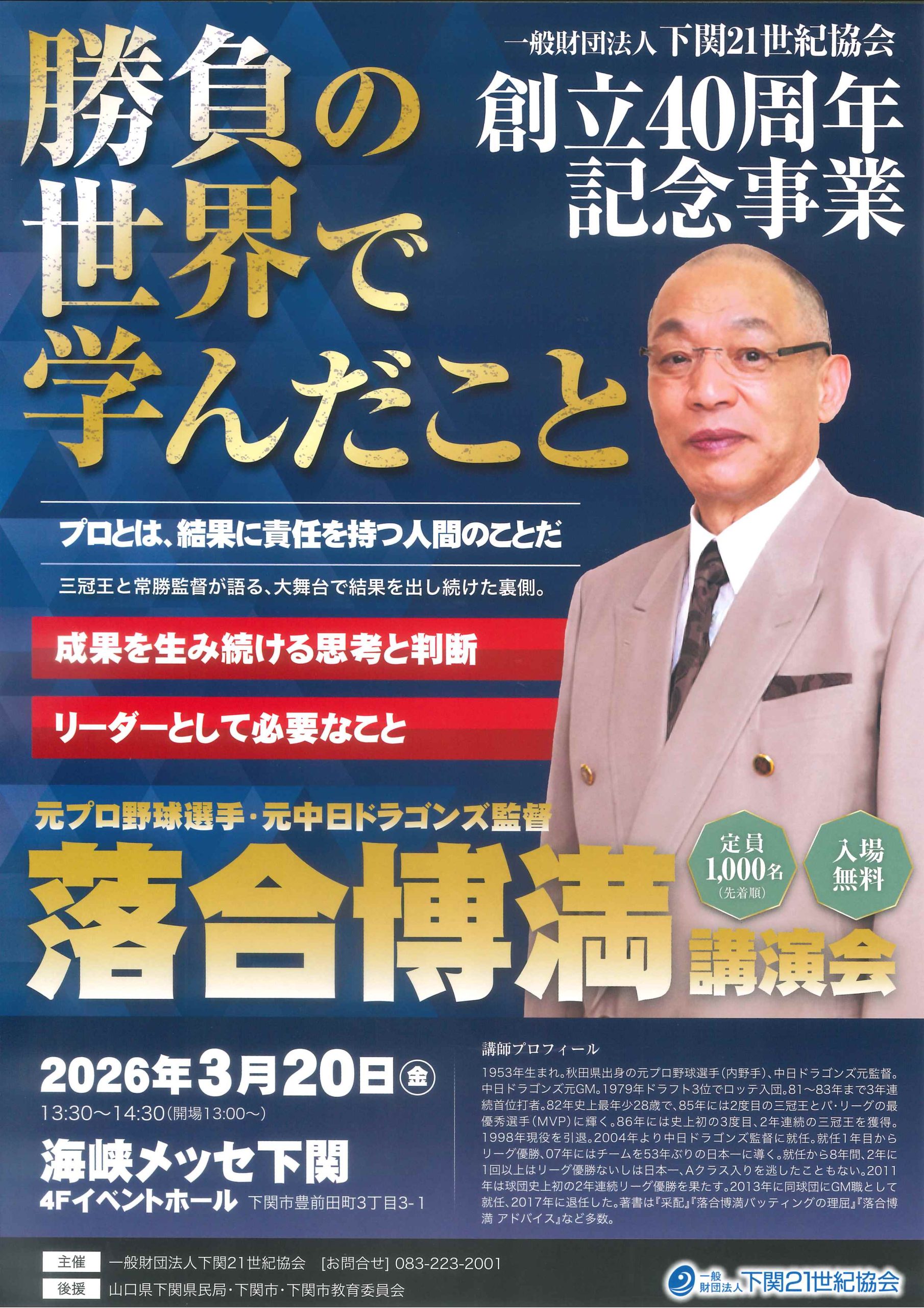- 一般財団法人 下関21世紀協会 創立40周年記念事業 勝負の世界で学んだこと